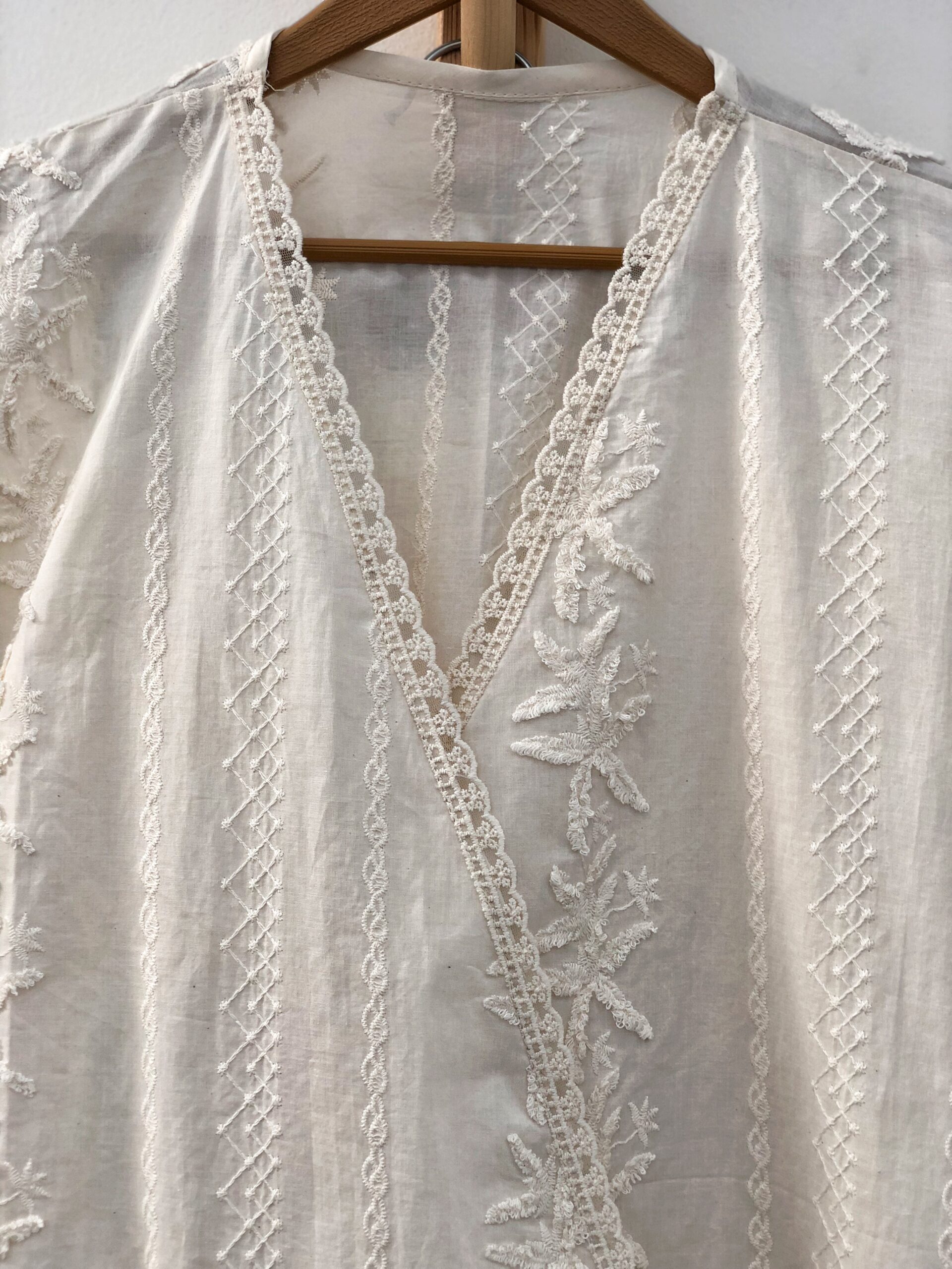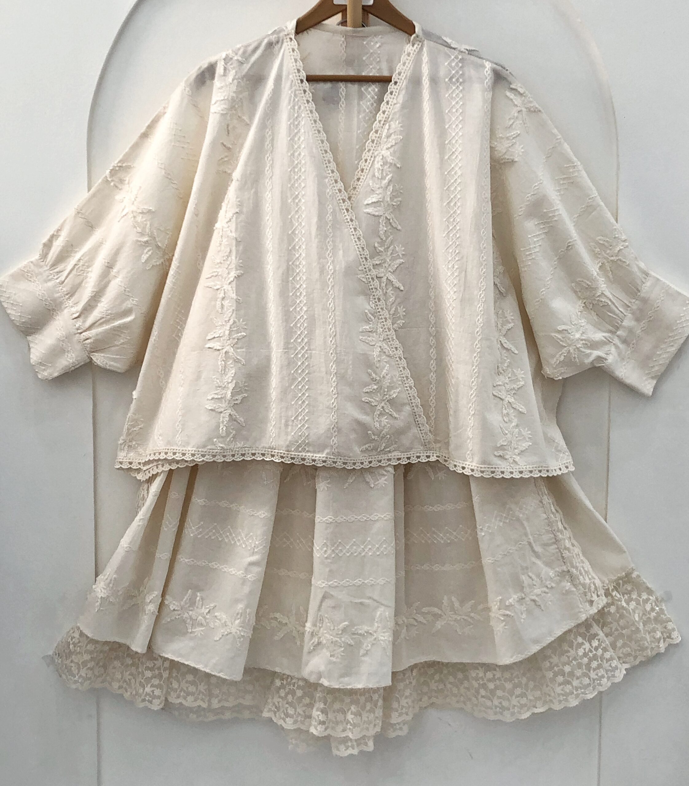 شومیز مدل کراپ است ، دامن دارای یک لایه آستر خامه دوزی شده است .