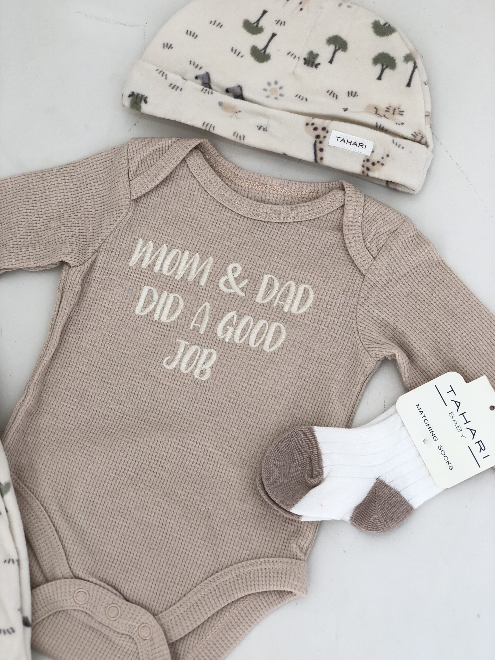 ست 4 تیکه وارداتی شامل شلوار ، بادی ، جوراب ، کلاه
