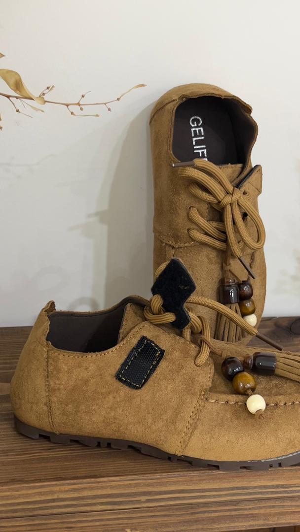 کفش جنس جیر وارداتی موجود در دو رنگ شتری و قهوه ای تیره